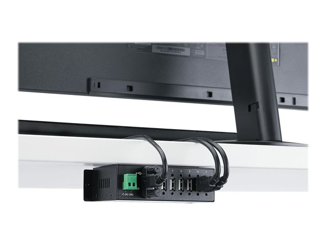 - Montera din industriella USB 2.0-hubb där det behövs med inbyggda monteringsfästen eller de medföljande DIN-skenorna
