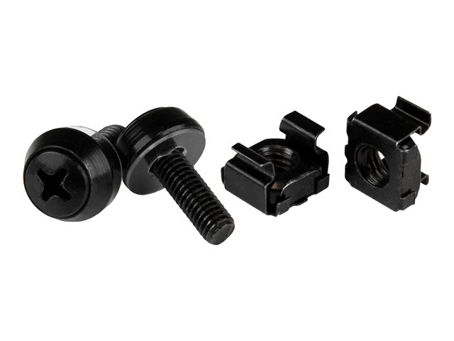 StarTech.com 50 Pack 10-32 Server Rack Cage Nuts and Screws with Washers, Rack Mount Hardware Kit, Network/IT Equipment Cabinet Clip/Captive Nuts & Bolts for Square Rack Holes, Black, TAA